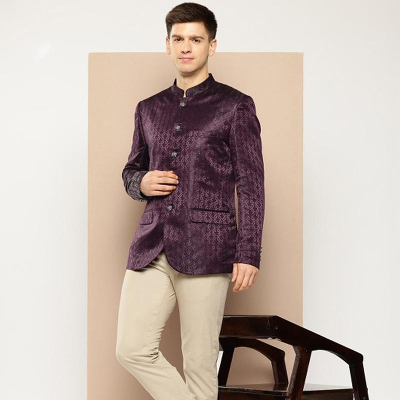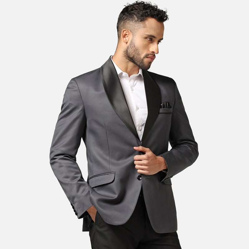 Men Black Floral Patterned Single-Breasted Slim Fit Tuxedo