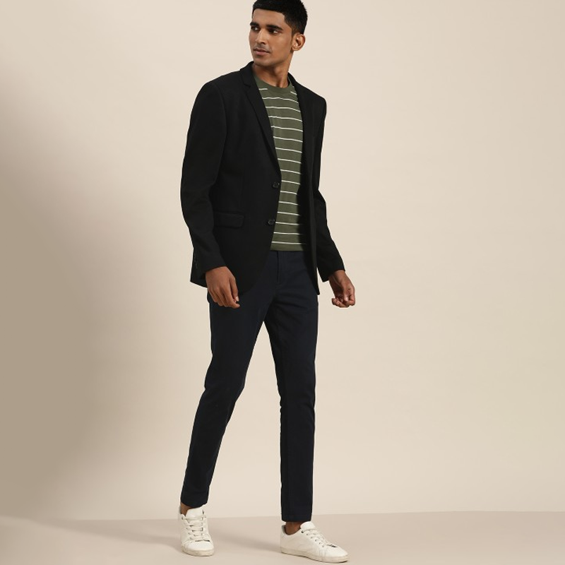 Men Black Slim Fit Solid Single-Breasted Casual Blazer