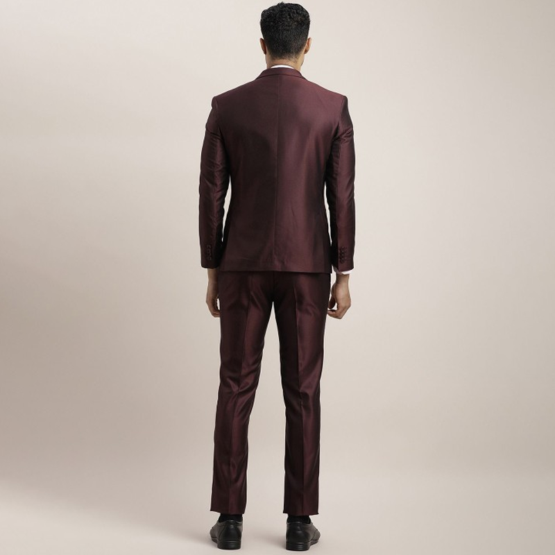 Men Single Breasted Slim Fit 3-Peice Self-Design Formal Suit