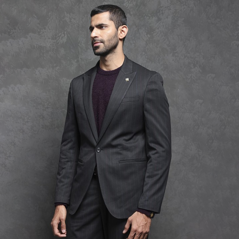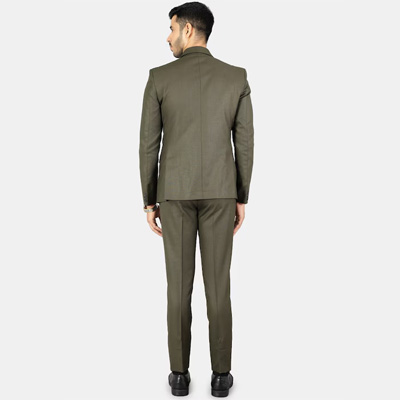 Green solid suit Green solid regular-fit formal blazer, has a notched lapel, single-breasted with double button closures, long sleeves, three pockets, a double-vented back hem and attached lining A pair of green solid regular-fit mid-rise trousers, has a waistband with belt loops, a zip fly and a button closure, and four pockets Size & Fit Regular-fit The model(height 6') is wearing size 36 Material & Care Polyester Cotton Dry Clean