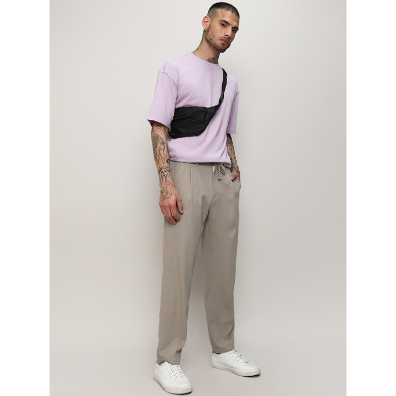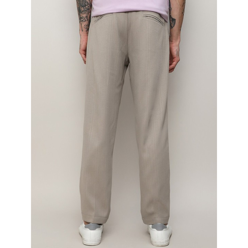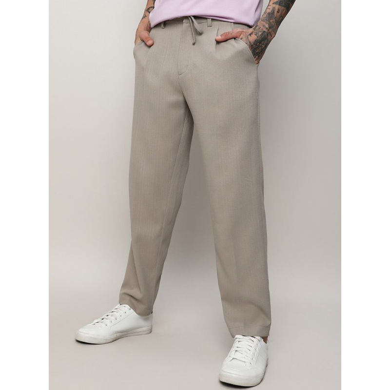 Grey woven trousers Loose fit Mid-rise Length: regular Pattern: solid Pleated design Feature: easy wash 4 pockets Size & Fit Fit: Loose Fit The model (height 6') is wearing a size 32 Material & Care Polyester Machine Wash