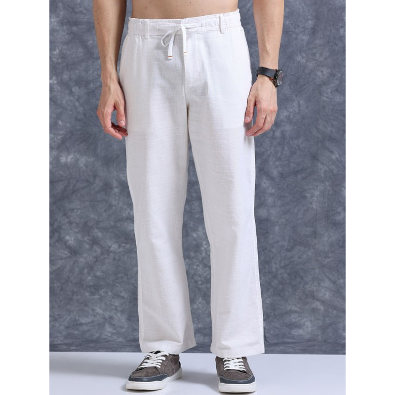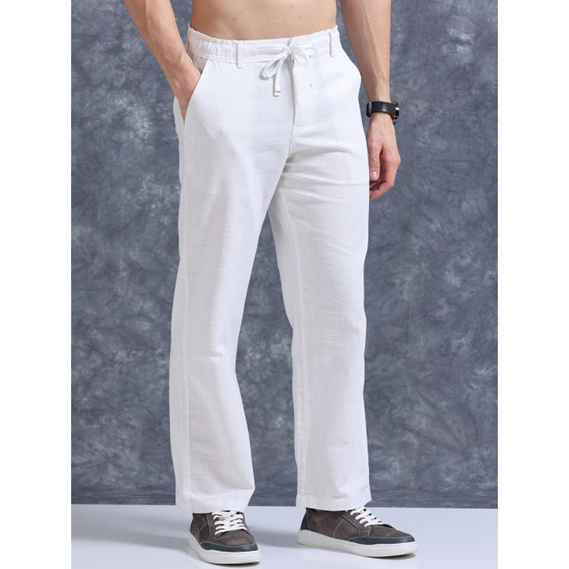 White woven cargos Regular fit Mid-rise Length: regular Pattern: solid Flat-front Feature: plain 6 pockets Size & Fit Fit: Regular Fit The model (height 6') is wearing a size 32 Material & Care Cotton Machine Wash